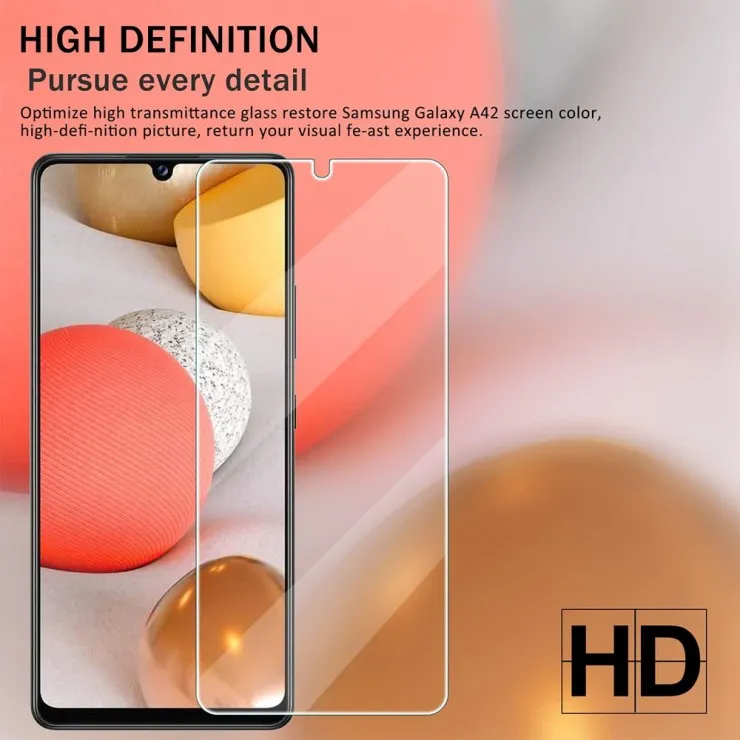 Compatible Brand | For Samsung Galaxy | Compatible Model | Samsung Galaxy A42 | Type | Screen Protector | Features | 2.5D, 9H Surface Hardness, Anti-Scratch, Anti-Shatter, Full Coverage, Tempered Glass,Oleophobic Coating, Rounded Edges & Slim Glass , Ultimate Touch Sensitivity & Whole Transparency | Material | Tempered Glass | Color | Ultra Clear | Manufacturer Warranty | 30 Days | Package Include | 2x Screen Protector |