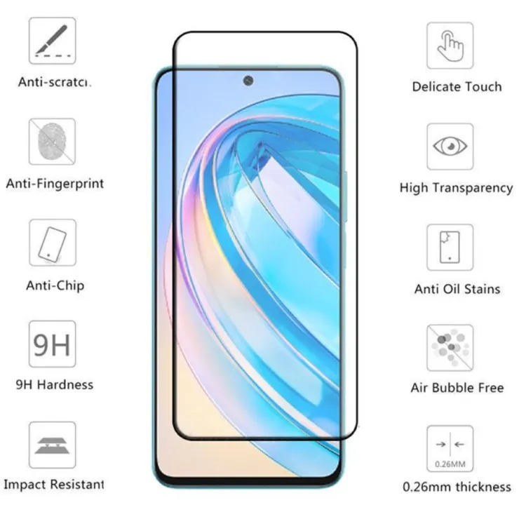 Anti-Scratch, Anti-Shatter, Full Coverage, Tempered Glass, Oleophobic Coating, Rounded Edges & Slim Glass, Surface Hardness: 9H, Ultimate Touch Sensitivity, Whole 9D |