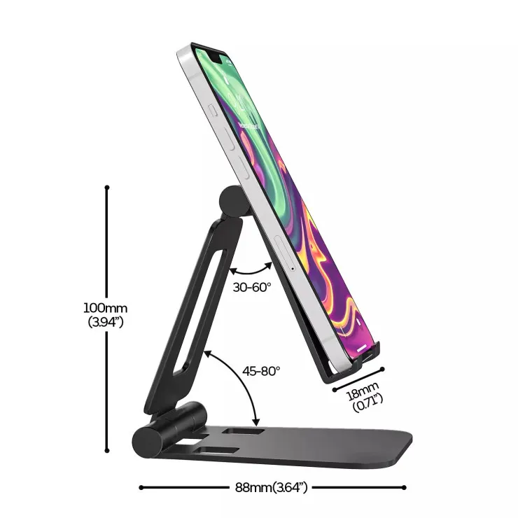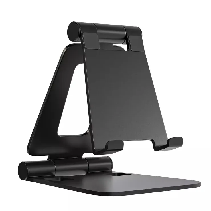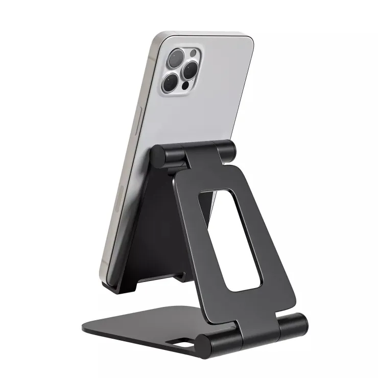 Despite its robust build, this phone stand is lightweight and easily foldable, making it highly portable. Slip it into your bag or backpack and take it with you to work, school, or on the go. Its space-saving design makes it perfect for small desks, nightstands, or kitchen counters where clutter is a concern but functionality is essential.