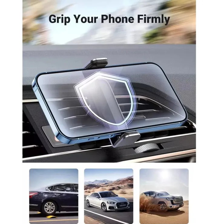 This holder features a smart gravity mechanism that locks your phone in place without the need for clamps, buttons, or adjustment knobs. As soon as your device is placed into the cradle, the weight of the phone naturally activates the arms to close around it, providing a snug and secure hold. When you're ready to remove the phone, simply lift it out. The gravity design ensures one-handed operation, allowing you to keep your focus on the road.