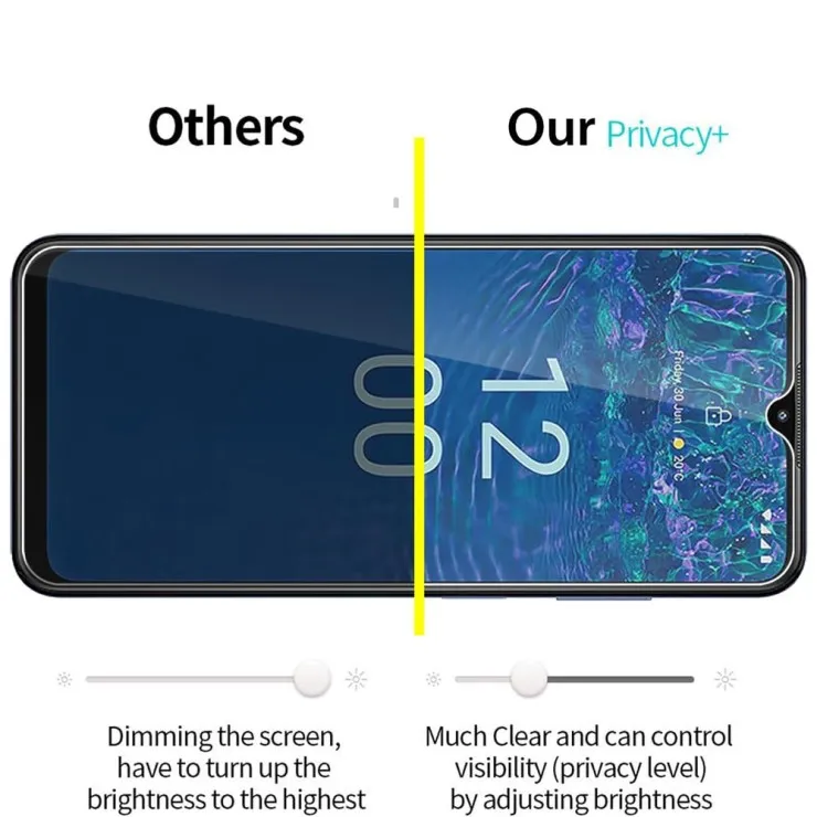 The Realme V23 privacy tempered glass protector offers more than just privacy—it also provides robust physical protection thanks to its premium 9H hardness rating. This is the highest level of hardness available for consumer tempered glass, meaning it can withstand scratches and scuffs from sharp objects such as keys, coins, or knives. Additionally, the glass helps protect your screen from accidental impacts or drops by absorbing shocks and preventing cracks or chips. This tough layer significantly extends the lifespan of your Realme V23’s display, keeping it free from unsightly marks and damage that could affect usability or resale value. The hardened surface also ensures the screen remains smooth and crystal clear even after months of use, providing peace of mind for everyday protection.