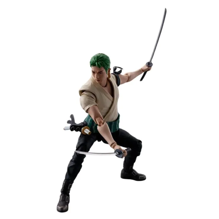 From the globally celebrated Netflix live-action adaptation of One Piece, the fearless swordsman Roronoa Zoro makes his debut in the Bandai Tamashii Nations S.H. Figuarts collection. Designed with precision, digital coloring, and exceptional sculpting, this 1/12 scale figure (approx. 5.7 inches tall) perfectly captures the likeness, intensity, and spirit of the Straw Hat Pirates’ master swordsman. Whether displayed in your collection or posed in action stances, this figure is a stunning tribute to Zoro’s strength, discipline, and iconic three-sword style.