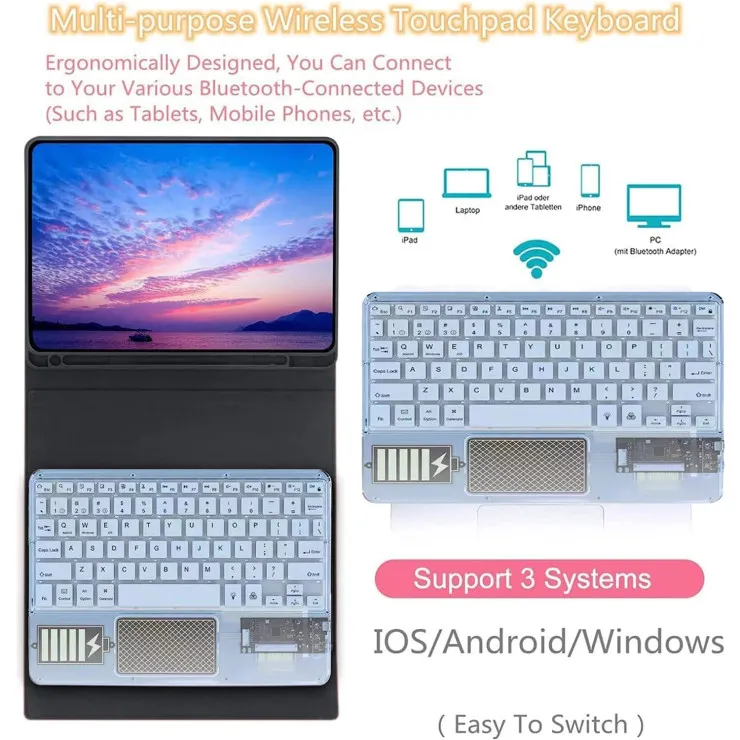 In today's fast-paced world, having a reliable and portable typing solution is essential. The Universal Portable Wireless Keyboard with Trackpad offers a perfect blend of convenience, functionality, and style. With its sleek design, versatile compatibility, and advanced features, this keyboard is ideal for users who value efficiency and portability.