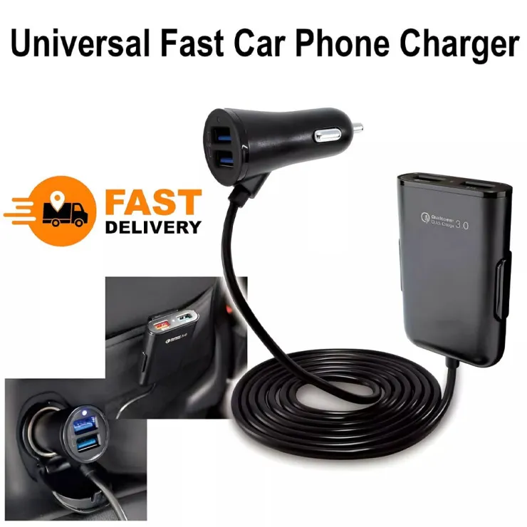 | Compatible Brand | Universal | Compatible Model | Universal | Features | 360 Protection, Accessible Controls, Adjustable Angle, Fast Charge, Flexible, Glossy, Heavy Duty, High Quality, Lightweight | Number of Ports | 4 | Material | ABS Plastic | Mounting Type | Clip | Type | Car Charger | Mounting Location | Socket Adapter | Color | Black | Warrenty | 30 days | Package included | 1x Car Phone Charger Adaptor |