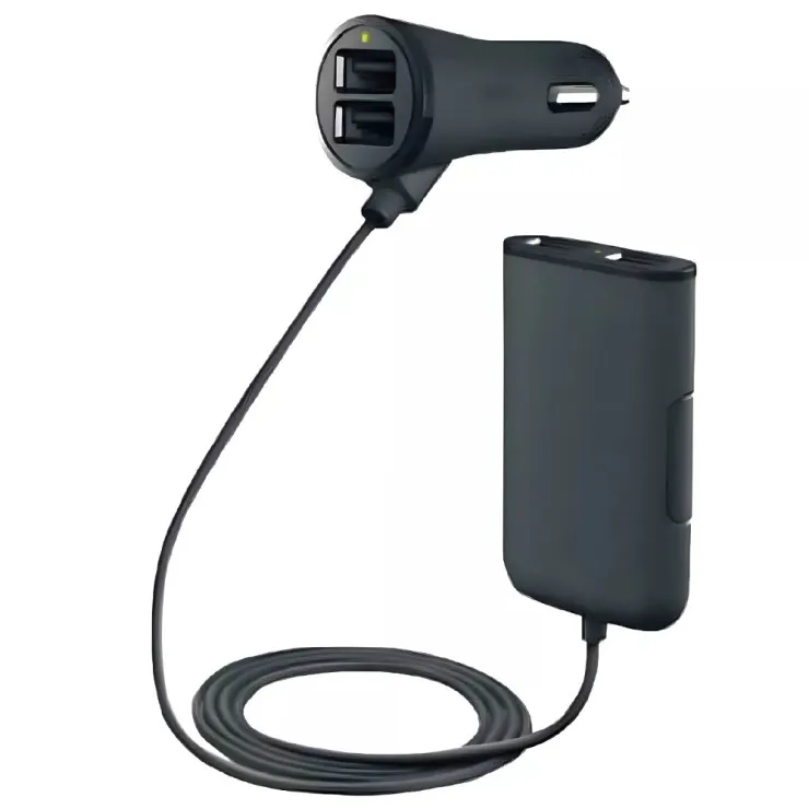 High-Speed USB Car Charger – 4-Port Adapter with 1.8M Extension Cable