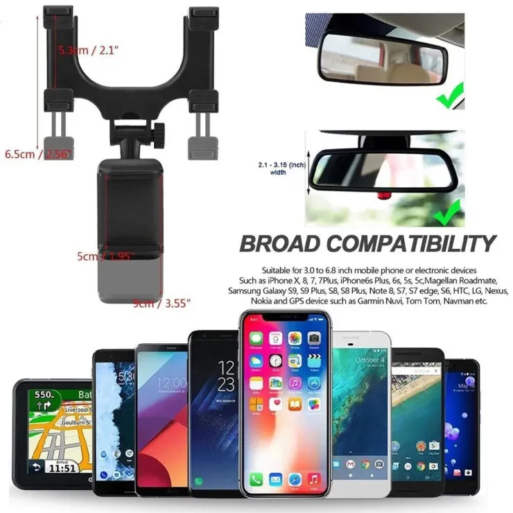 Adjustable Rear View Mirror Phone Holder – GPS Mount for Vehicles | UK
