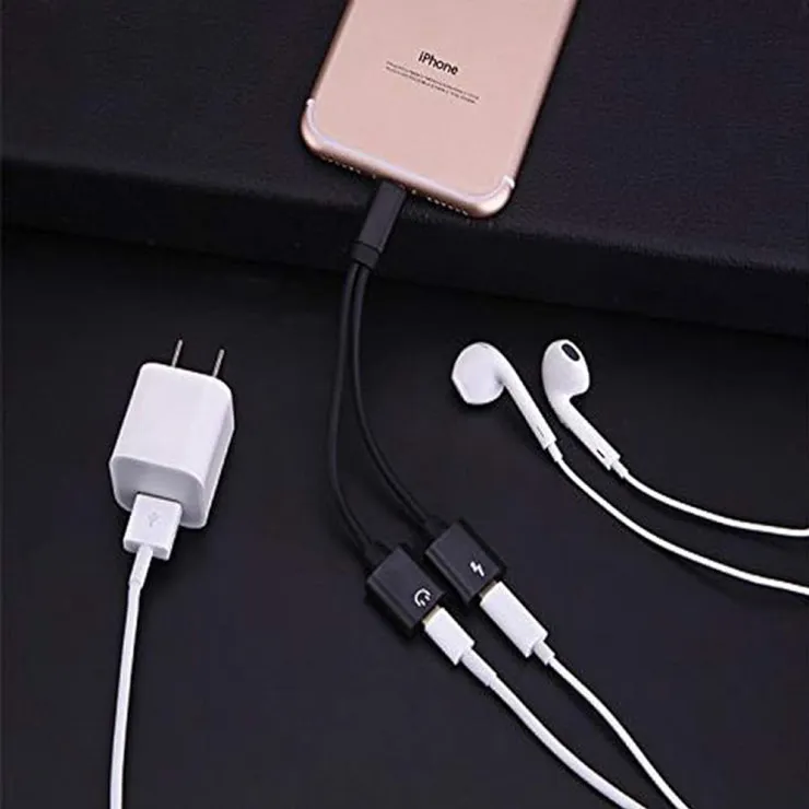 Perfectly compatible with iPhones that no longer include the traditional headphone jack, this adapter connects directly to the Lightning port. It splits into two Lightning connectors — one for charging and the other for connecting wired earphones or headphones. It’s the ideal solution for users of iPhone 7 and later models who still prefer the stability and quality of wired audio connections but also require continuous charging.