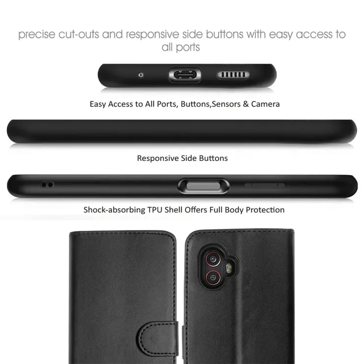 Experience the perfect blend of luxury and practicality with our Black Flip Leather Wallet Case for the Galaxy XCover6 Pro. The rich leather finish adds a touch of sophistication, while the flip cover design provides comprehensive protection. With convenient card slots and a magnetic closure, this case is the ideal choice for those who value both style and functionality.