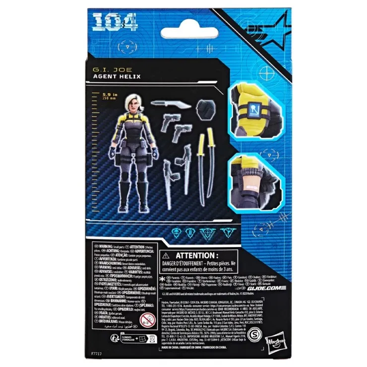 Brand | Hasbro | Franchise | G.I. Joe | Type | Action Figure | Features | G.I. Joe Agent Helix 6" figure with premium detailing, full articulation, 8 accessories, and collectible packaging. | Material | Plastic | Color | Multi Colors | Model Number | F7717 | Manufacturer recommended age | 4 years and up | Product Dimensions | 5.1 x 14 x 25.4 cm; 150 g | Package Include | 1X .I. Joe Classified Agent Helix Figure |