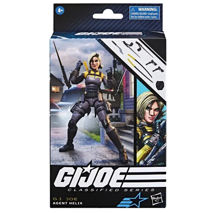 This 6-inch (150 mm) figure showcases Hasbro’s exceptional craftsmanship, blending classic G.I. Joe design with modern enhancements. The Agent Helix Classified Series figure features high-quality sculpting, sharp paintwork, and screen-accurate detailing that make her look ready for any mission. The closed-box packaging highlights her signature artwork, file card icons, and digital render — making it perfect for both display and collection.