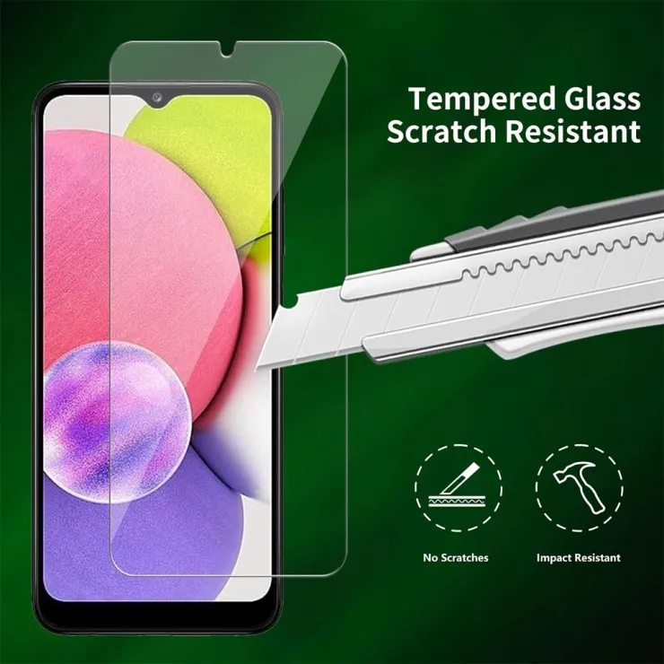 Protect your Samsung Galaxy A03S with this HD Clear Scratch-Proof Tempered Glass Screen Protector—combining superior clarity, tough durability, and effortless touch sensitivity in one essential accessory.