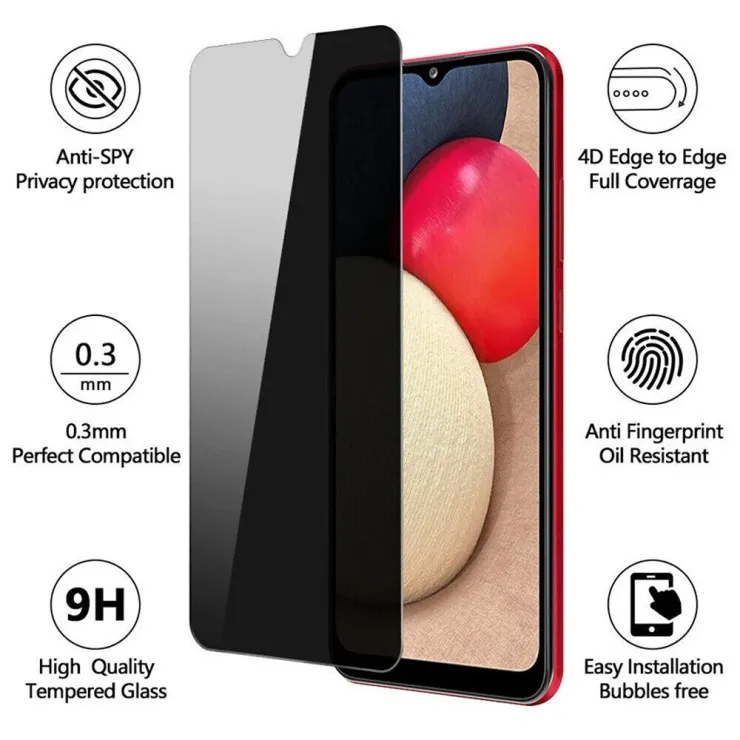 Privacy Tempered Glass for Galaxy A04S – 2-Pack with 9H Scratch Resistance and Anti-Spy Shield