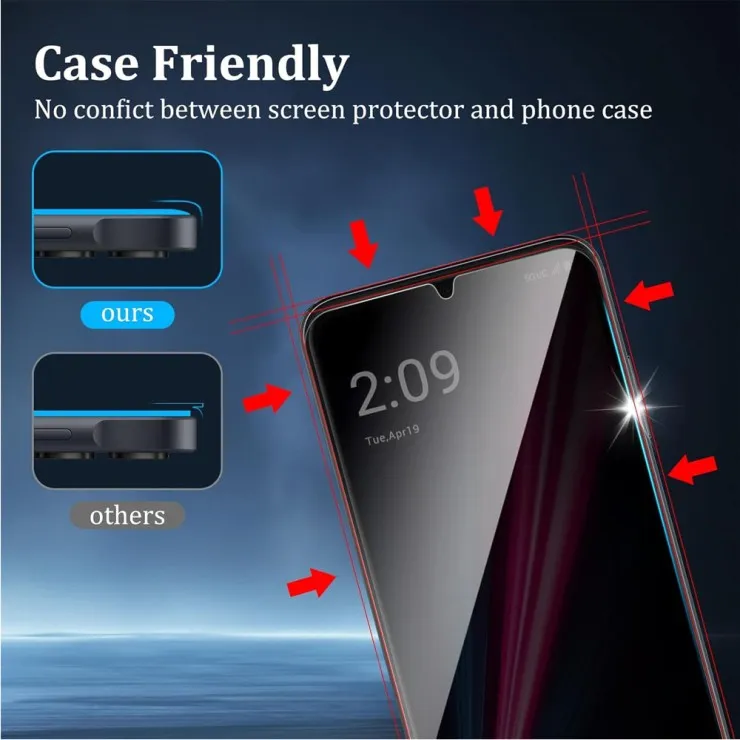 In an era where screen peeking is a real concern, our privacy screen protector employs precision micro-louver technology to safeguard your personal content. Built into the tempered glass, this privacy layer narrows the viewing angle to approximately 28–30°, ensuring that anyone glancing at your device from the side sees only a darkened screen. From crowded trains and office cubicles to coffee shops and lecture halls, you can browse emails, review confidential documents, or catch up on messages without worrying about prying eyes. Best of all, the filter is seamlessly integrated, so you won’t notice any visual distortion when looking at the display head-on.