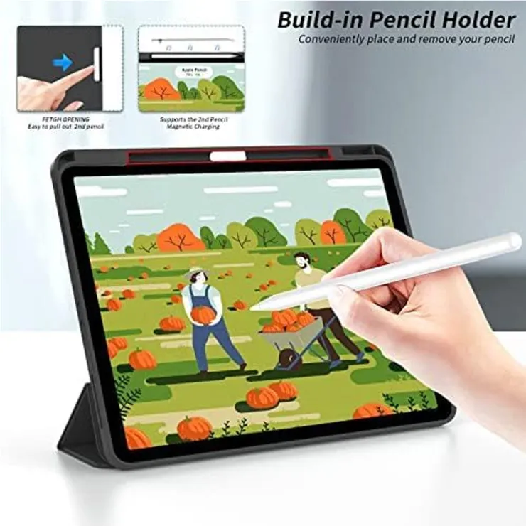 Equipped with an integrated magnetic front cover, the case supports the iPad’s auto sleep/wake feature. Open the cover and your iPad wakes instantly. Close it, and the device powers down—conserving battery life while ensuring you're always just a flip away from productivity or entertainment. The magnetic closure also keeps the cover securely in place when not in use.