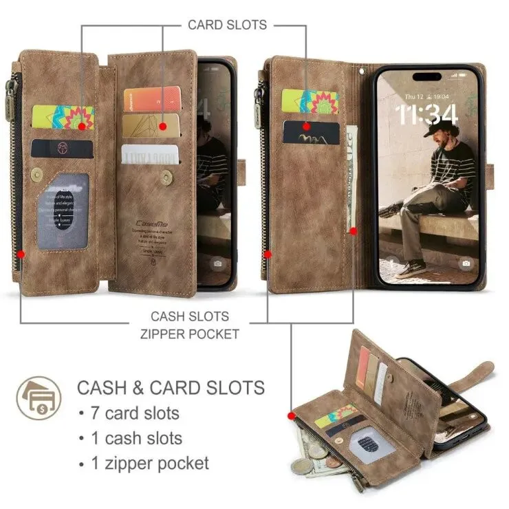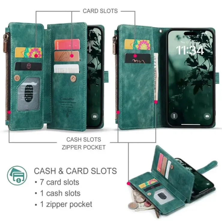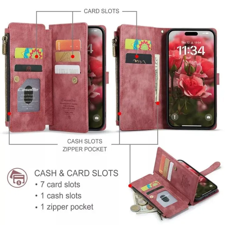 | Compatible Brand | Apple | Compatible Model | iPhone 13 Pro | Features | Soft vintage PU leather exterior, flexible Silicon interior, protects against drops and scratches, 7 card slots and 1 cash slot, built-in viewing stand, strong magnetic clasp, easy access to all ports and buttons. | Material | Premium Leather | Type | Wallet Case | Color | Red, Green, Black, Brown | Warrenty | 30 days | Package included | 1 X iPhone 13 Pro Zipper Wallet Case |