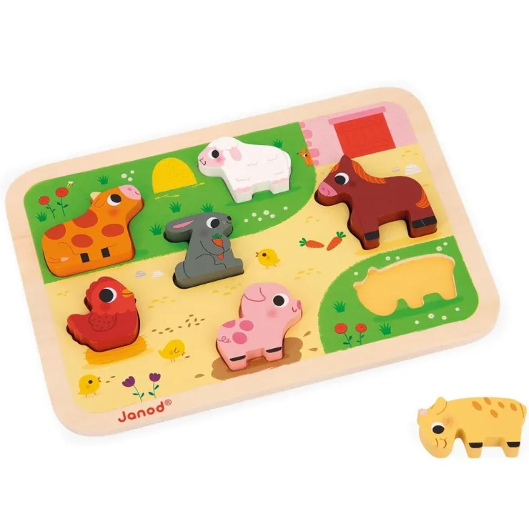 Brand | Janod | Type | Wooden Puzzle Toy | Features | Janod J07121 – Wooden chunky farm puzzle with 7 animal pieces, FSC wood, develops motor skills, imagination, for 18+ months. | Material | Basswood Plywood & MDF | Number of Pieces | 7 | Manufacturer recommended age | 18 Months to 3 Years | Colour | Multicolored | Package Include | 1 × Janod Farm Puzzle |