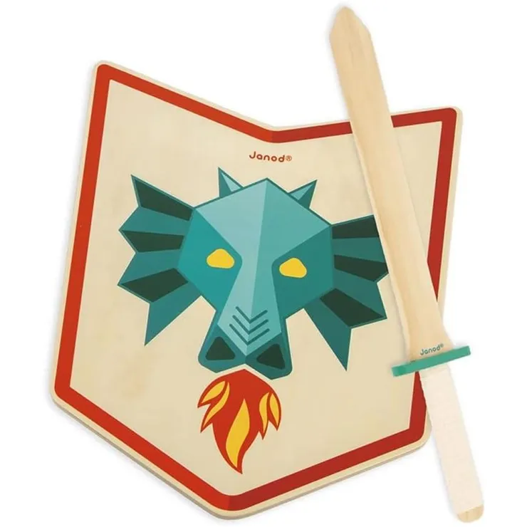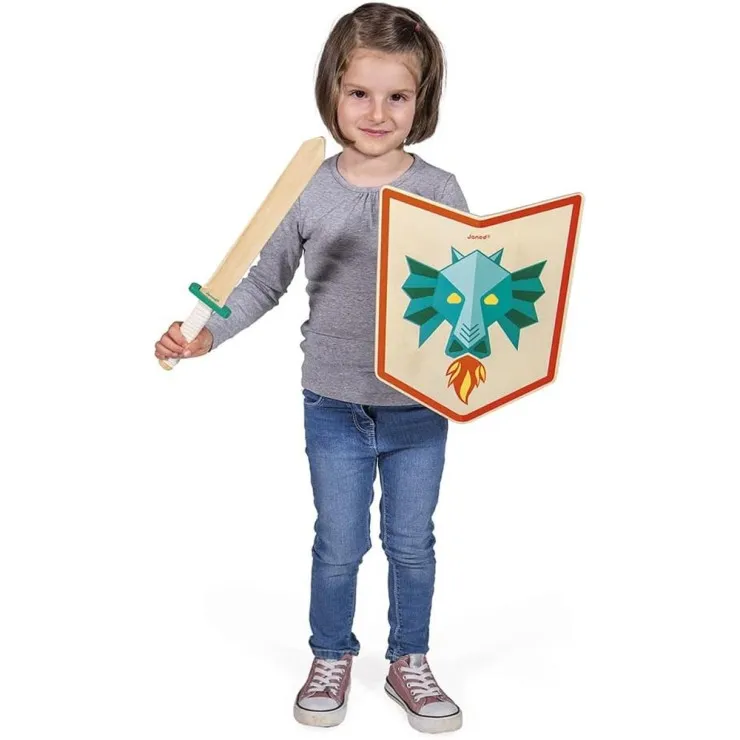Janod Dragon Knight Set | Wooden Shield & Sword Pretend Play