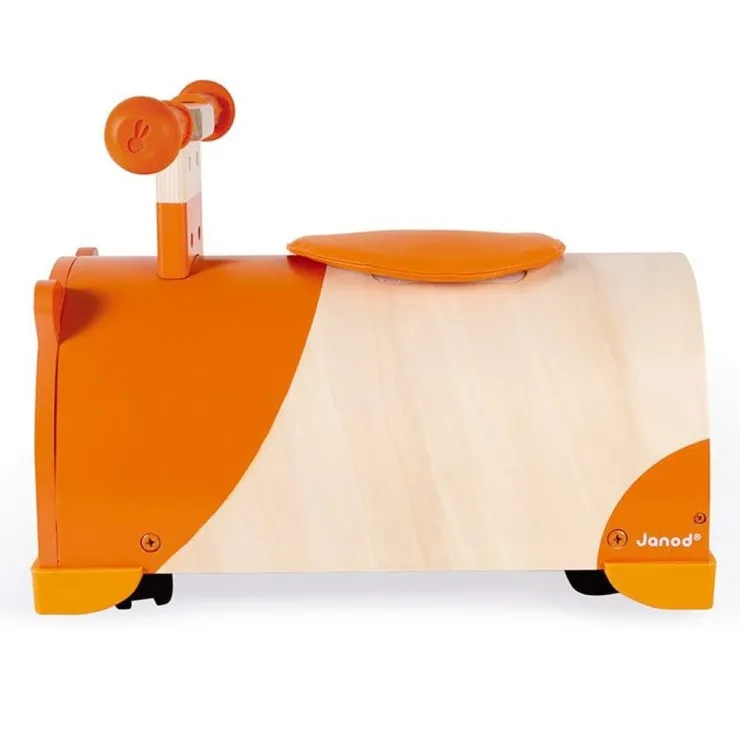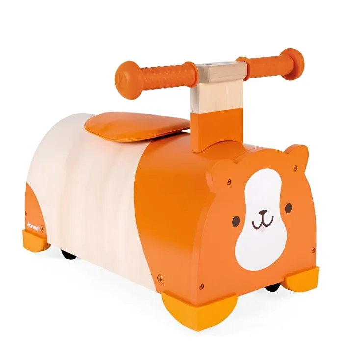 Janod Baby Ride On Hamster Toy – Wooden Toddler Push Along with Storage