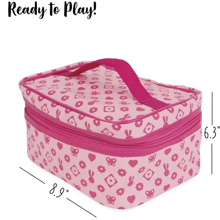 The pink vanity case itself is a treasure: lightweight, durable, and decorated with pretty patterns. With its metal zipper and fabric handles, children can easily carry their beauty essentials wherever they go – whether it’s a playdate, a sleepover, or simply moving from room to room.