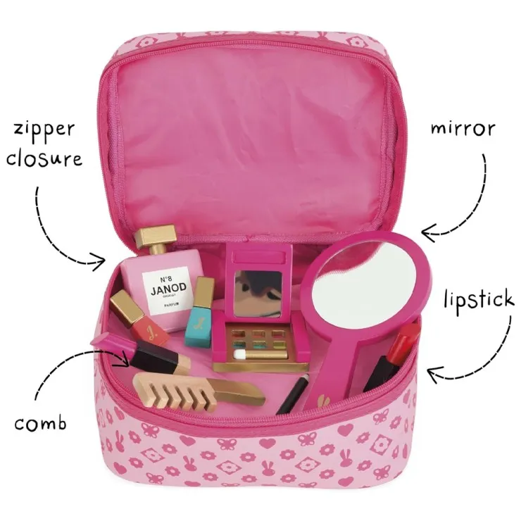 Janod Vanity Case with 9 Wooden Accessories – Kids Makeup Toy