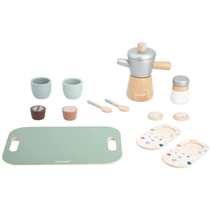 Whether it’s breakfast time with the family, a café run for teddy bears, or a full pretend restaurant service, the Janod Italian-Style Coffee Set brings the joy of everyday rituals into your child’s playtime — creating memories one little coffee break at a time.