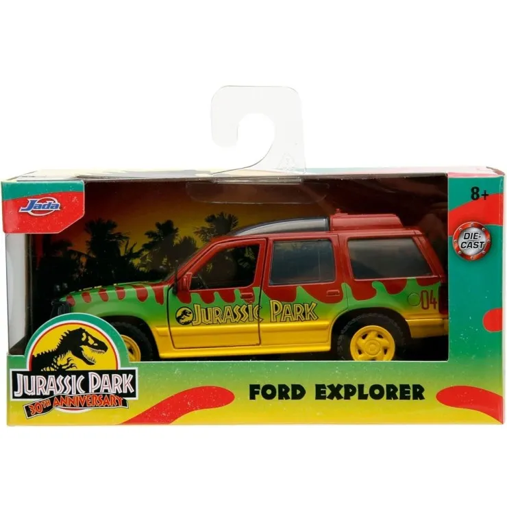 Brand | Jurassic World | Type | Diecast Model Vehicle | Features | Jurassic World 1/32 Diecast 1993 Ford Explorer model by Jada Toys, highly detailed, brand new & sealed for collectors and display. | Material | Metal | Color | Multicolor | Manufacturer recommended age | 8 years & up |