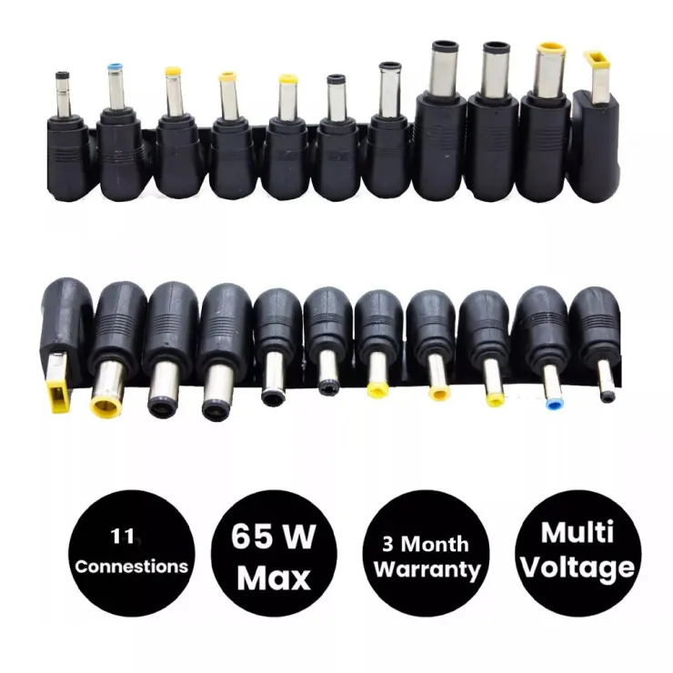| Compatible Brand | Universal | Compatible Models | Universal | Features | 65W powerful output, universal compatibility, compact design, overcurrent protection, short circuit protection, UK plug, durable build, value for money. | Type | Power Adapter | Voltage | 20 V | Colour | Black | Manufacturer Warranty | 60 Days | Package Includes | 1 x 65W Universal Laptop Charging Adapter |