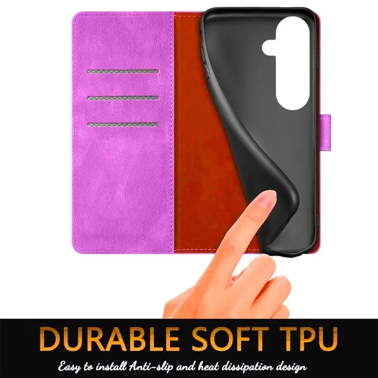 Samsung Galaxy S25 FE Protective Purple Leather Flip Wallet Phone Case