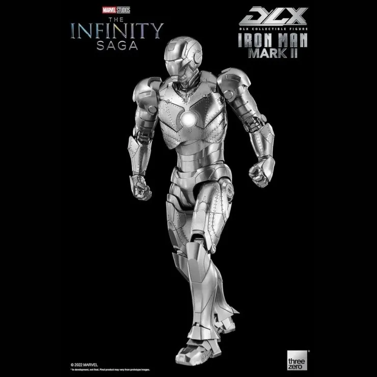 ThreeZero and Marvel Studios proudly present the DLX Iron Man Mark 2, a stunning addition to the Marvel DLX series. This figure represents Tony Stark’s very first Iron Man armor, the prototype built at Stark Industries. Its metallic silver finish, applied with a multi-layer metallic coating process, faithfully replicates the sleek design and engineering brilliance seen on the big screen. Fans and collectors can now own a piece of Iron Man history in miniature form.