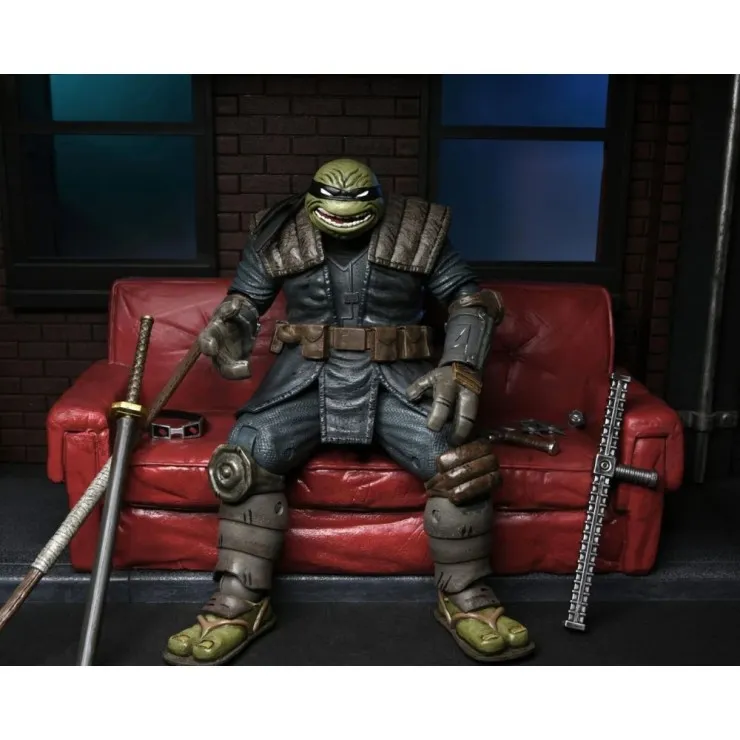 Standing at 7 inches tall, the Last Ronin Armored figure is sculpted with extraordinary detail, replicating every aspect of the Turtle’s hardened armor, scarred features, and weathered gear. NECA’s design ensures a screen-accurate look that appeals to both long-time TMNT fans and modern comic collectors.