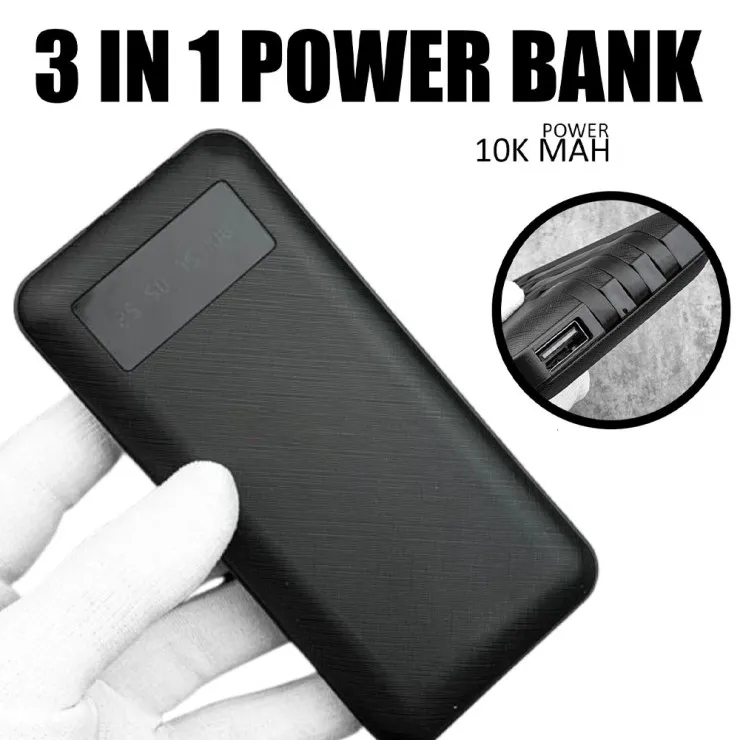 | Compatible Model | Universal | Colour | Black | Package Includes | 1x Power Bank | Type | 10000mAh Power Bank | Material | Plastic | Features | Anti-Scratch, Fast Charge, Heavy Duty, Lightweight, Non-Slip, High Security, Li-ion Battery, Multiport Portable Charger, 22.5W | Items Included | 3-In-1 Power Bank |