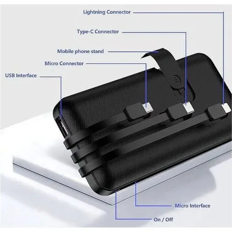 All Phones Compatible Power Bank – 10000mAh with Built-in Cables – UK Stock