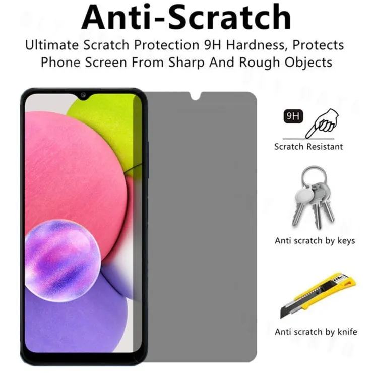 Whether you're browsing in public or working on private content, the Privacy Tempered Glass for Samsung Galaxy A03S (Dual Pack) ensures your screen stays protected and your data stays yours. This high-performance screen protector combines advanced anti-spy technology with 9H tempered glass strength, giving you the best of both privacy and durability.