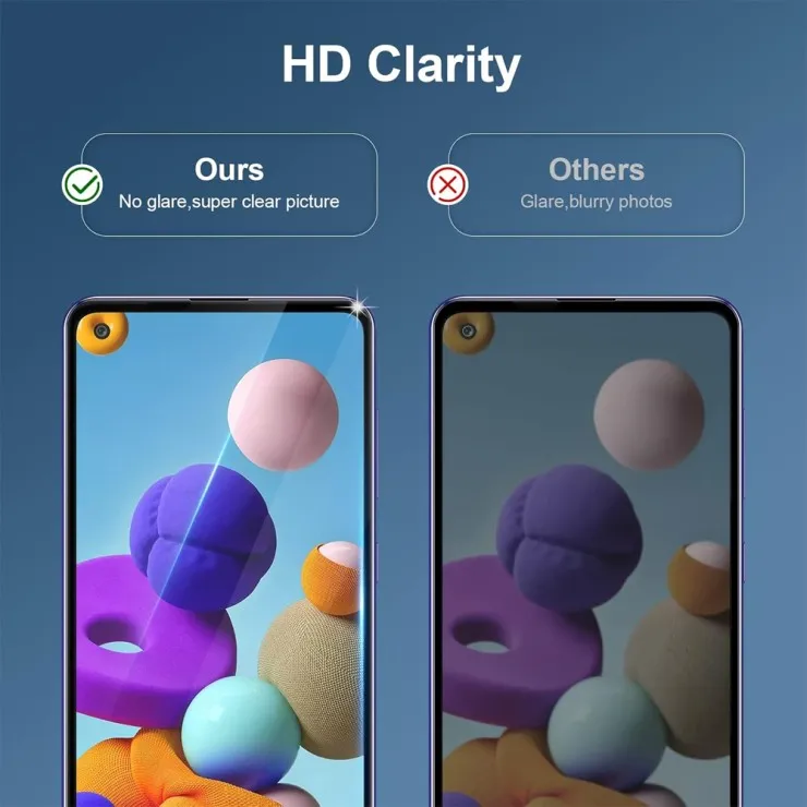 Tailored specifically for the Samsung Galaxy A21, this protector ensures full compatibility with all buttons, sensors, and front camera, maintaining both functionality and aesthetic.
