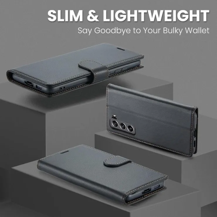 Upgrade your Samsung Galaxy S21 FE with a wallet case that delivers more than just looks. This PU Leather Flip Folio Wallet Case offers 360° protection, RFID security, and practical card storage – all wrapped in an elegant and unisex design.