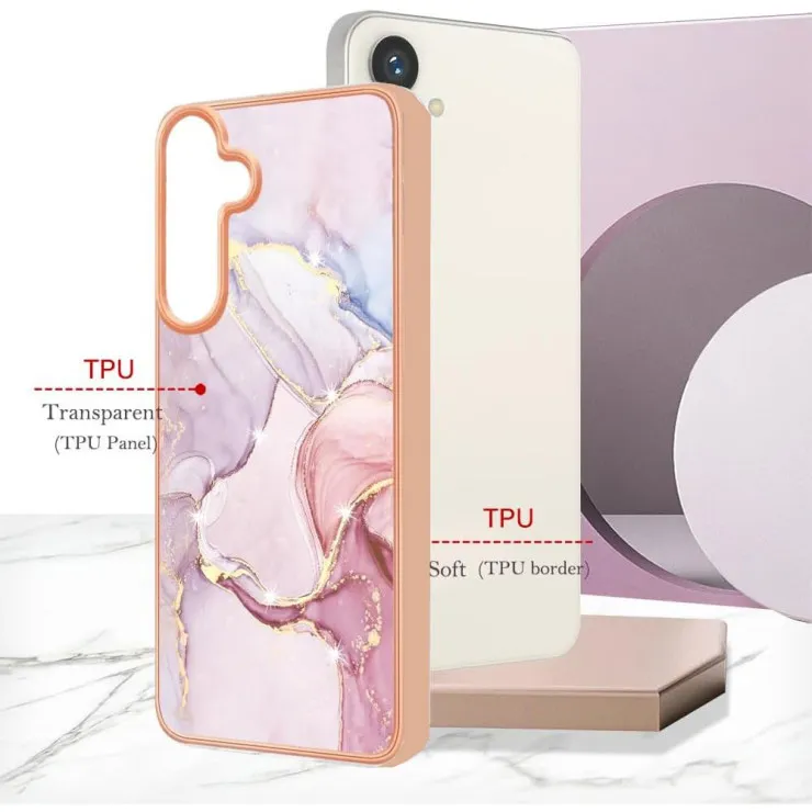 The polished rose gold marble pattern features a glossy finish that resists fingerprints and smudges, keeping your Samsung Galaxy S25 looking pristine and elegant throughout the day.