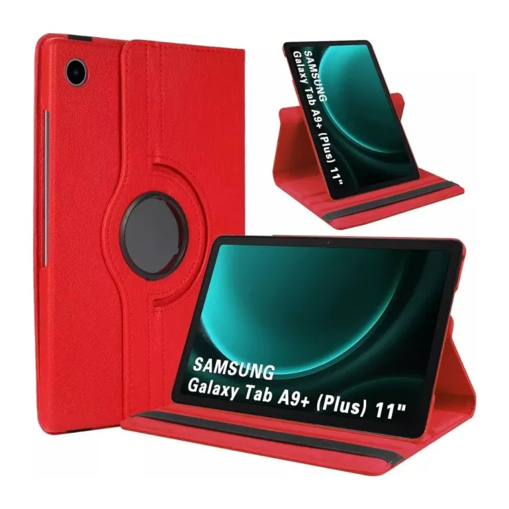 Compatible Brand | For Samsung | Compatible Models | For Samsung Galaxy Tab A9 Plus 11-Inch 2023 | Features | 360 Rotating Case, Impact Resistant, Integrated Stand, Magnetic, Rotating, Shockproof, Smart Case | Type | Rotating Case | Material | Leather | Color | Black, Navy, Rose Gold, Purple, Red, Pink, Sky, Green, Orange and Silver | Manufacturer Warranty | 30 Days | Package Includes | 1 x 360° Rotating Leather Case for Samsung Galaxy Tab A9 Plus |