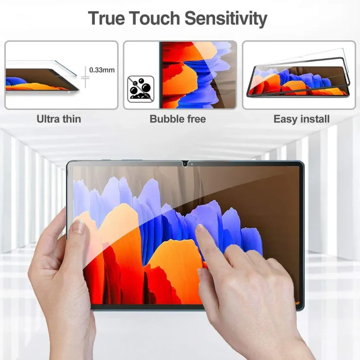 Perfect Fit: Tailored exclusively for the Samsung Galaxy Tab S7 Plus 12.4-inch model, you can trust that this screen protector fits your device like a glove, covering the entire display area without interfering with your tablet's functionality.