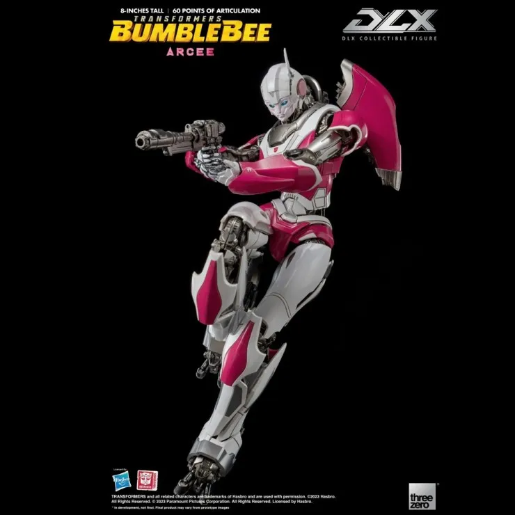 Every detail of the ThreeZero Transformers: Bumblebee Arcee DLX Action Figure reflects official licensing from Hasbro, TakaraTomy, and Paramount Pictures. This ensures absolute authenticity and faithfulness to the cinematic version of Arcee, making it a collectible that holds both visual and long-term value for fans across the globe.