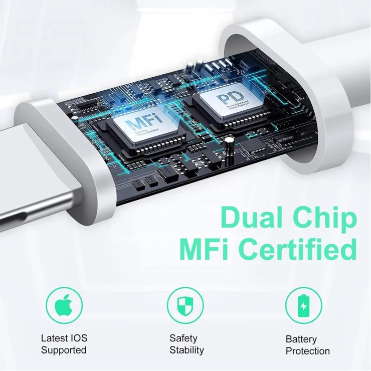 Experience worry-free charging with our Apple-approved 2M USB C to Lightning cable. Designed to meet Apple’s rigorous standards, this cable ensures safe and efficient charging for your iPhone, delivering reliable performance and peace of mind.