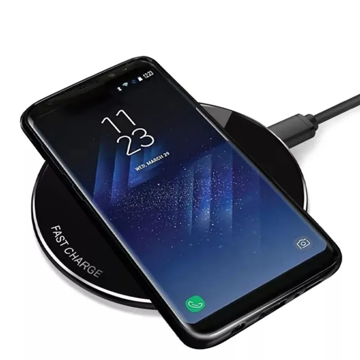 Upgrade your charging experience with this stylish black wireless charging pad. The minimalist design seamlessly fits into any environment, whether at home or the office. The high-performance Qi technology delivers a fast and reliable charge, making it a perfect accessory for your Samsung Galaxy S9, S8 Plus, or Note 9. Enjoy a clutter-free setup and efficient power delivery with this elegant charging solution.